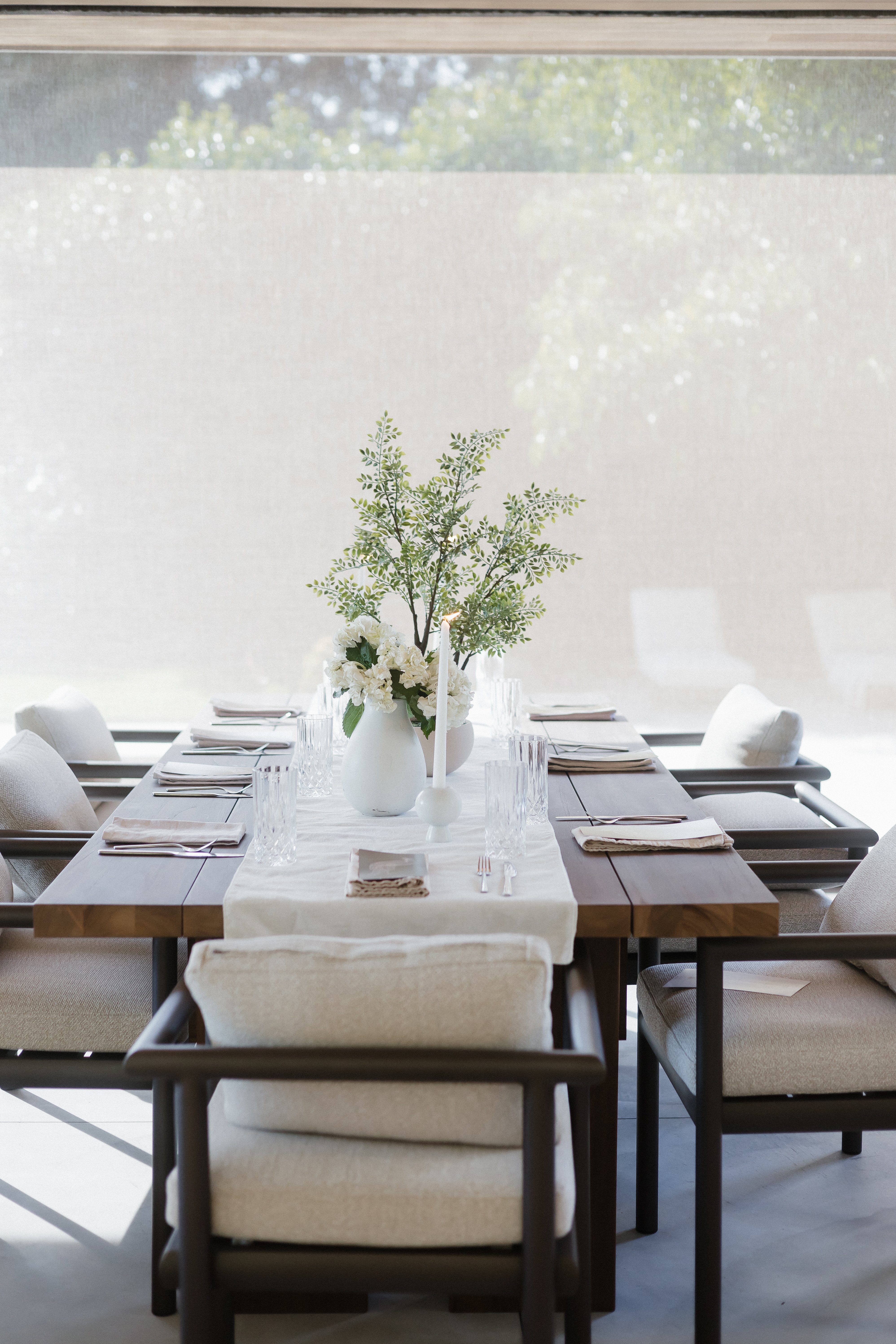 Each event is tailored for you: custom-printed menus, floral and candlelit décor, curated table settings, and hand-picked wine pairings.